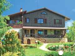ნახევრად timbered სახლები, chalets ან Kobets
